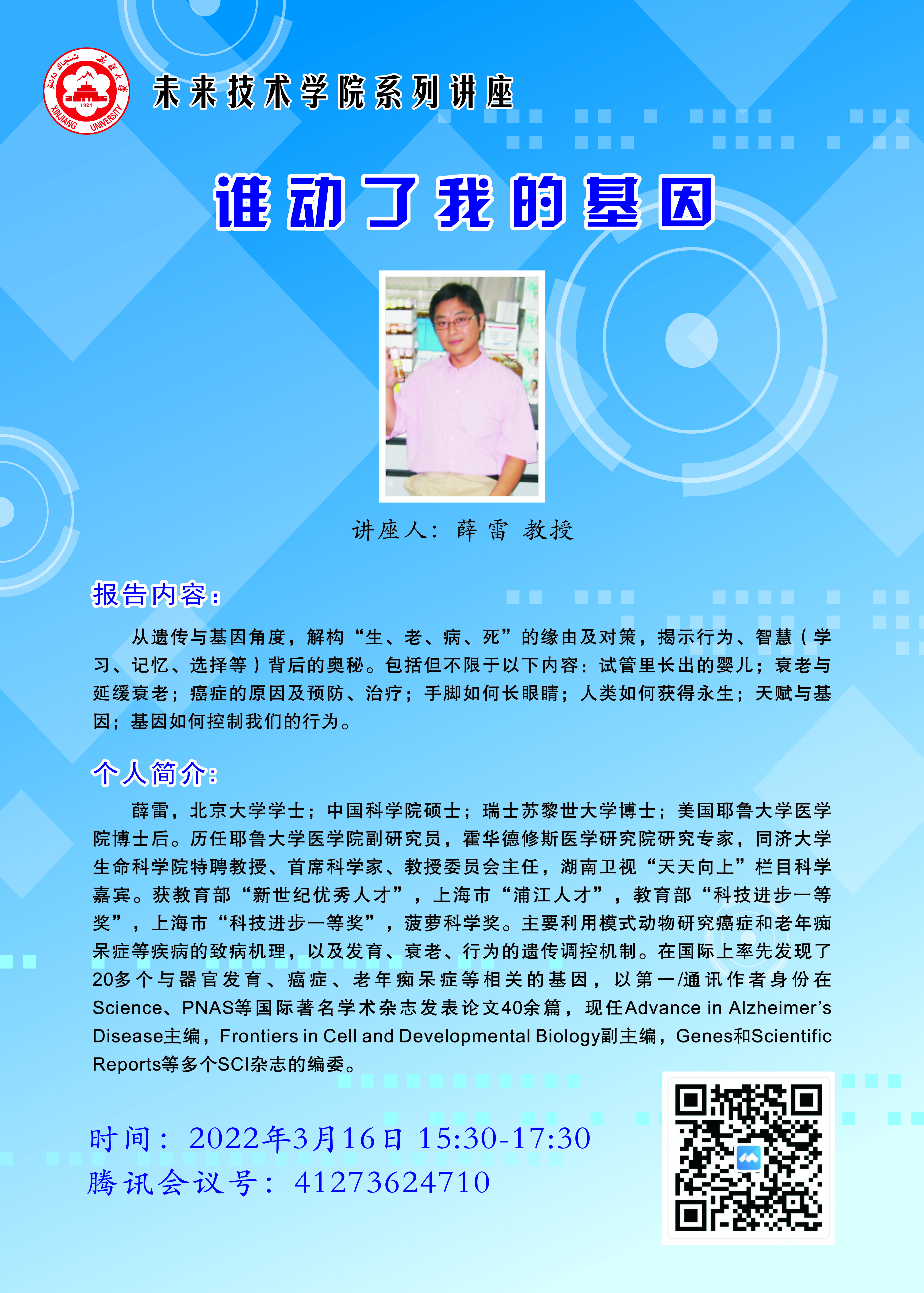 皇冠体育注册未来技术学院系列讲座——谁动了我的基因