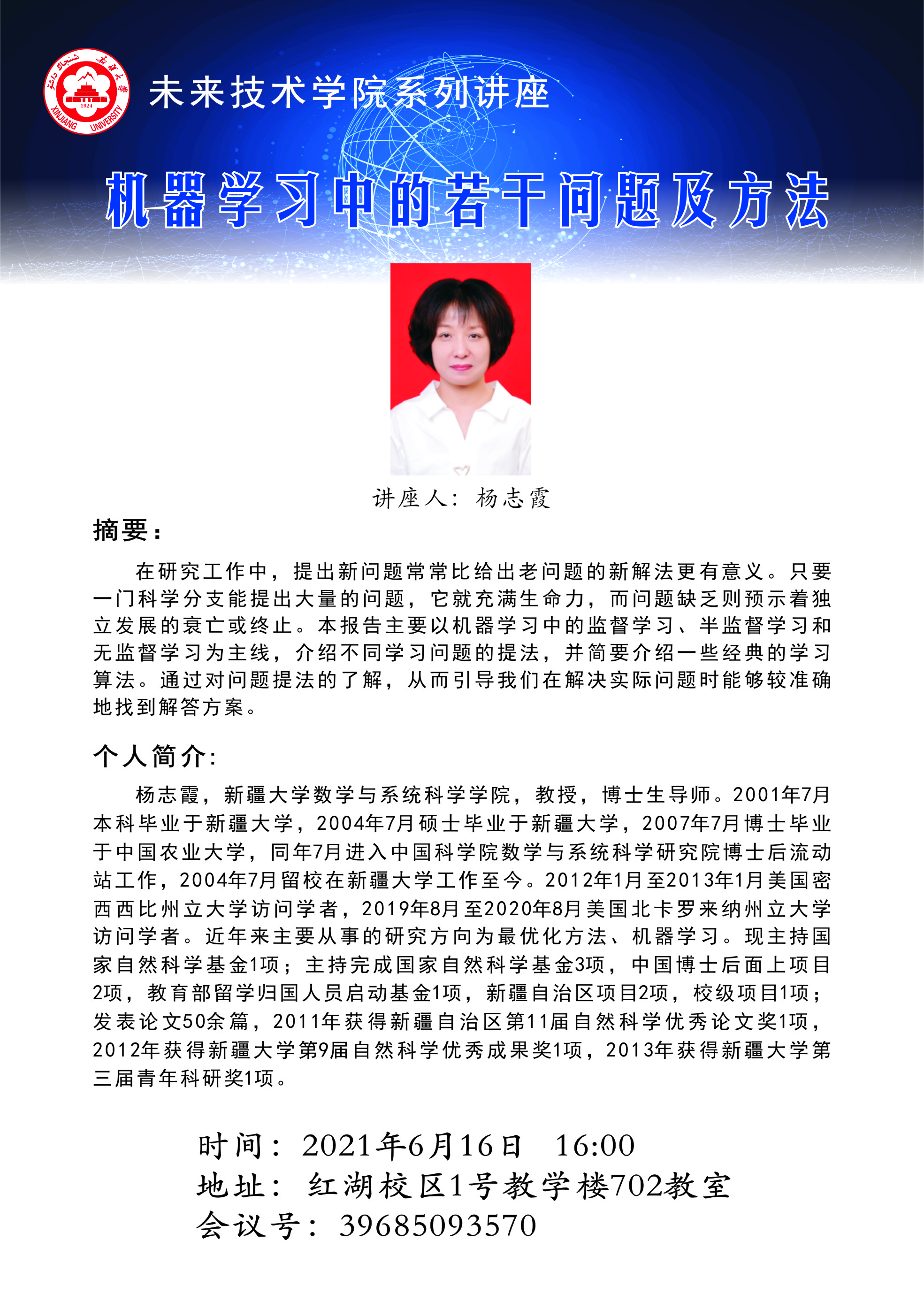 皇冠体育注册未来技术学院系列讲座——机器学习中的若干问题及方法