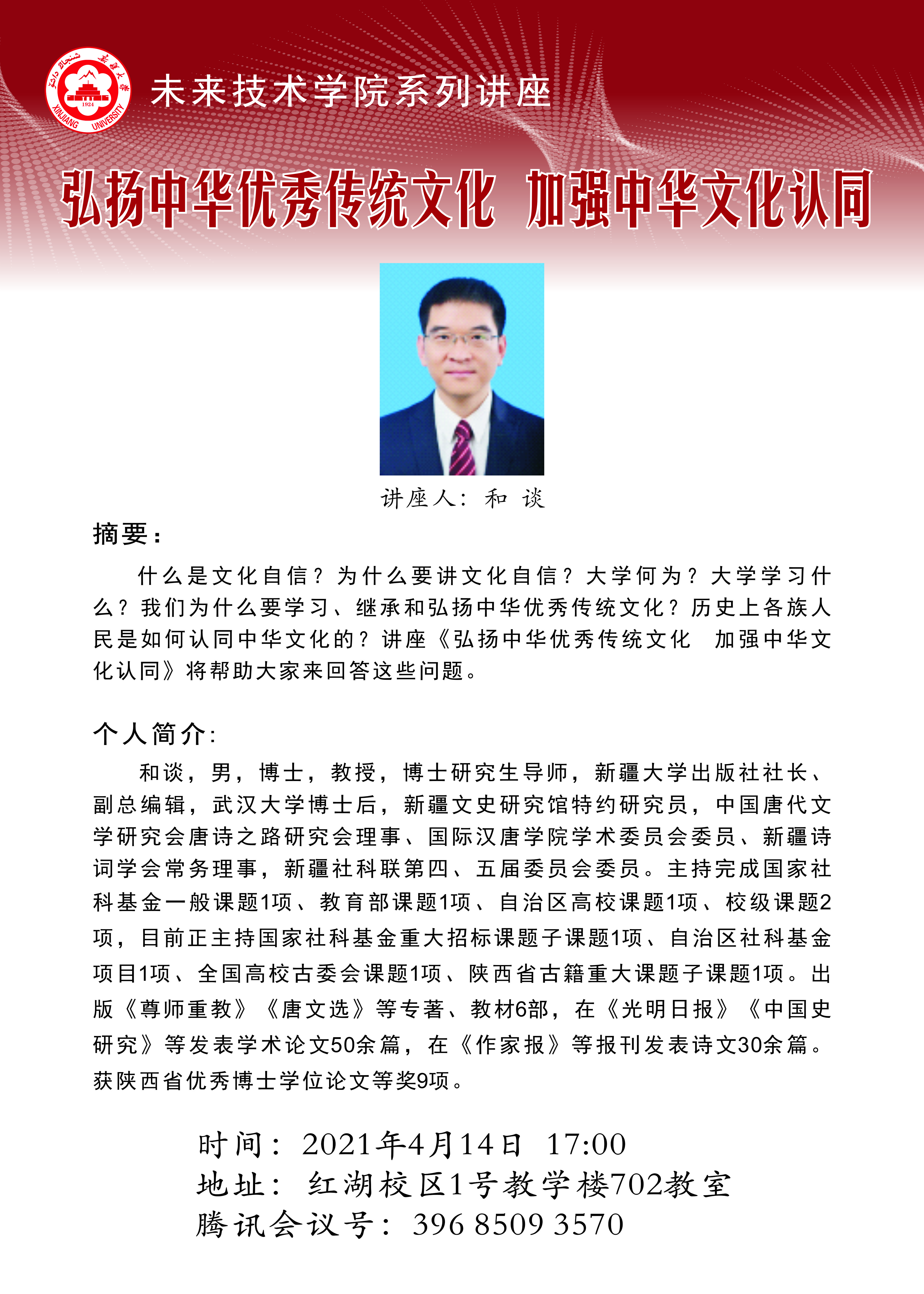 皇冠体育注册未来技术学院系列讲座——弘扬中华优秀传统文化 加强中华文化认同